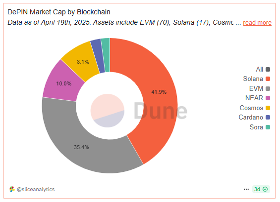Solana's architecture, characterized by high throughput and minimal transaction costs, has positioned it as the blockchain of choice for DePIN projects. By April 2025, Solana hosted over 238,000 registered on-chain DePIN nodes, with the sector's total market value reaching $3.25 billion, surpassing other blockchain platforms significantly.