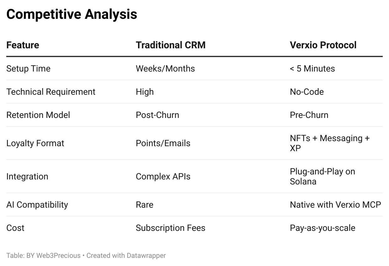 Built on Metaplex Core, Verxio leverages Solana's speed and low cost to offer scalable, modular, and intelligent loyalty tools. Think of it as CRM reimagined for the blockchain era—programmable, interoperable, AI-ready, and community-centric.